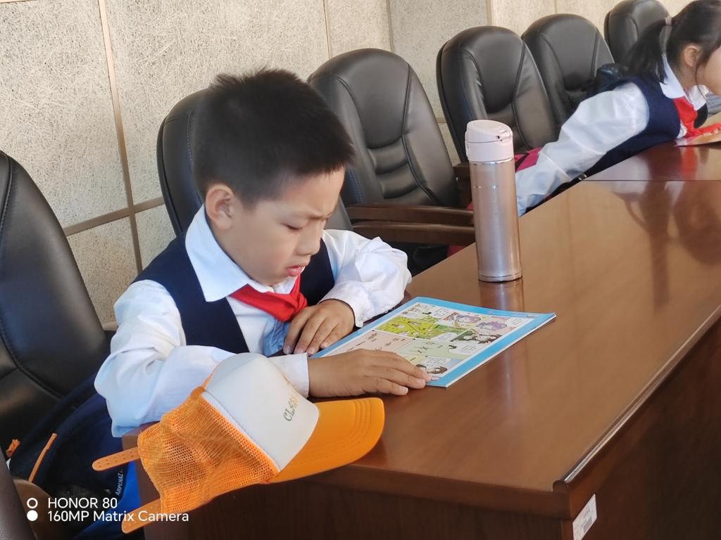 分組活動后,期刊出版中心《青少年科技博覽》雜志主編周四紅老師向參與活動的平山道小學每一位師生贈送一本雜志,同學們迫不及待地翻閱新收到的雜志,互相分享發現的趣味內容。水室副主任崔振林寄語同學們:“希望大家像雜志里的小科學家一樣,保持好奇,勇于探索。”