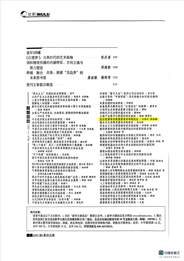 此次摘編是繼2024年第3期文章《論古籍整理追求旨趣的七個緯度》(作者:王世偉)獲《新華文摘》2024年第14期轉載及2024年第5期文章《歷史上的古籍保護意識與措施》(作者:杜澤遜,特約編輯:周余姣 責任編輯:聯誼)獲《新華文摘》2025年第2期全文轉載,并榮登當期封面目錄后,在一年內第三次被《新華文摘》轉載。