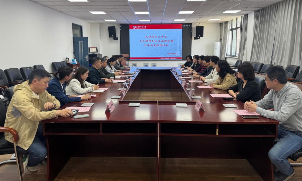 本站訊(通訊員 陳潔)近日,地理學部與天津市第三中學舉行合作共建簽約儀式。天津市第三中學黨委書記劉揚、副校長孫琳帶領相關教師和學生代表35人來我校參加共建活動。地理學部黨委書記蘇睿先、副書記劉亮、副院長胡蓓蓓、各系主任及教師代表參加簽約儀式。