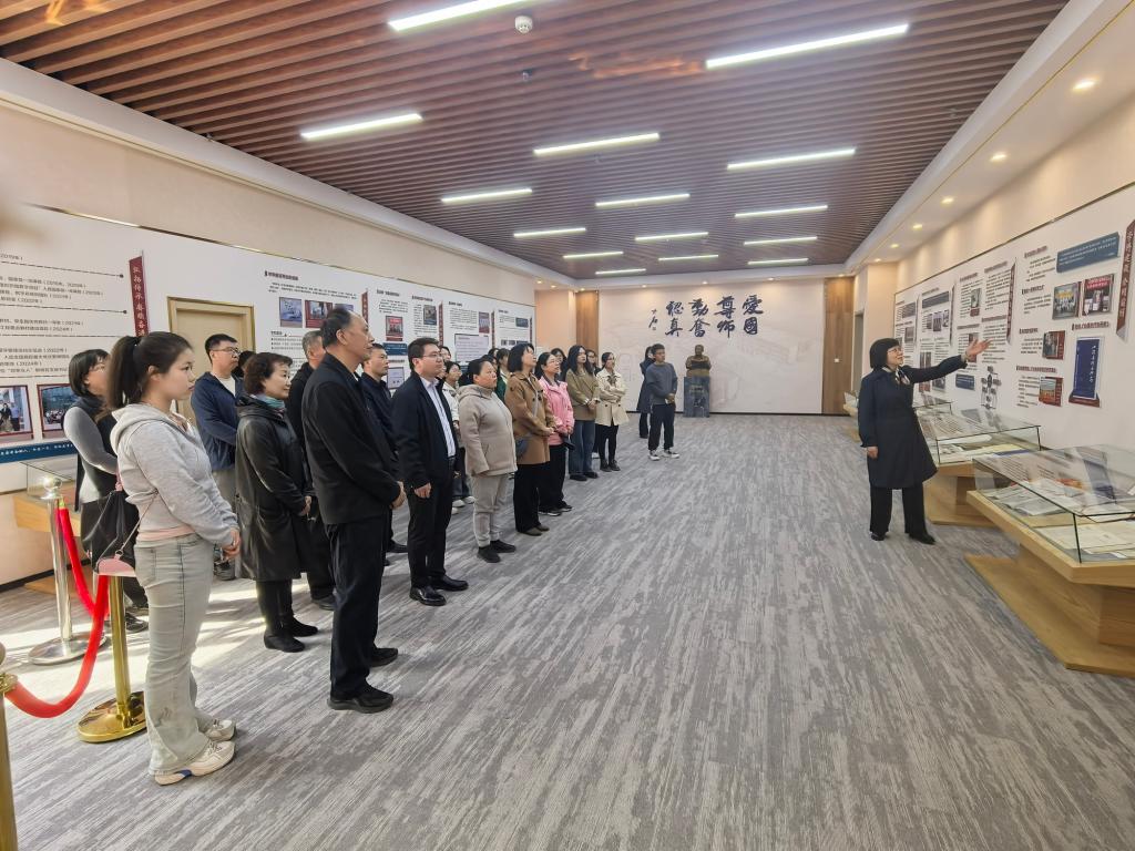 師生來到沈德立先生銅像前,清理周邊環境,大家圍繞銅像緩緩行進,仔細瞻仰先生銅像,表達對沈德立先生卓越貢獻的崇高敬意與深切緬懷。在沈德立科學家精神教育基地,結合圖片實物等資料王曉莊教授做了生動講解,40多年前,沈先生白手起家,艱苦創業,堅持學科交叉、理論與實踐相結合的學術思想,把我校心理學科建設成為地方高校唯一的國家級重點學科,生動詮釋了科學家精神和教育家精神的內涵,感悟先生“愛國、尊師、勤奮、認真”的治學精神和“人以德立”的崇高品質。