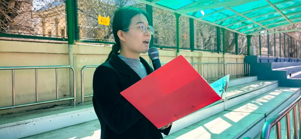 3月24日,新華中學(xué)操場上,商沙沙老師在國旗下為現(xiàn)場師生講授《減緩氣候變化,守護(hù)冰川,從我做起》思政微課,并向師生發(fā)出“生態(tài)守護(hù)者”的青春號(hào)召:冰川消融不是遠(yuǎn)方的嘆息,而是我們觸手可及的責(zé)任!新疆天山冰芯中1940年的黑碳數(shù)據(jù),揭示著工業(yè)文明對(duì)自然的深遠(yuǎn)且不可磨滅的影響,而關(guān)一盞燈、擰緊水龍頭、重復(fù)使用筆記本——這些微小的行動(dòng),卻是我們守護(hù)冰川的青春力量!