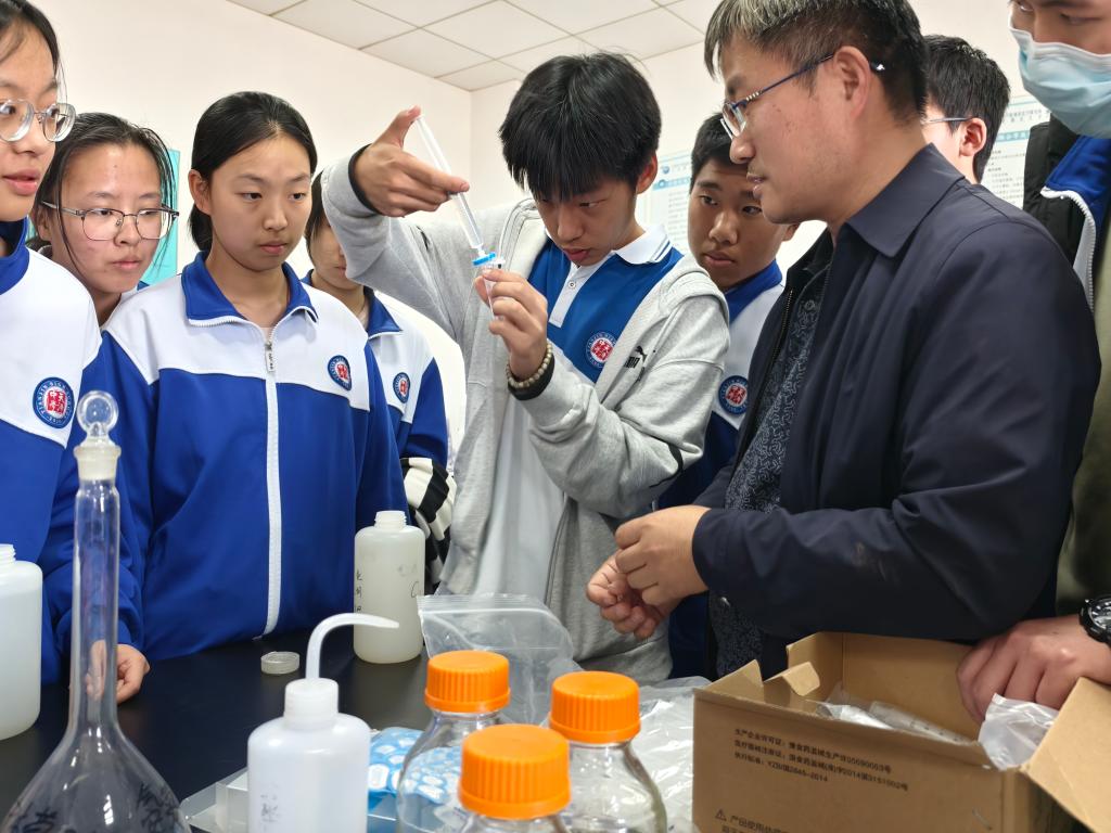 走進(jìn)天津市水資源與水環(huán)境重點(diǎn)實(shí)驗(yàn)室,尚云濤老師結(jié)合水資源管理和節(jié)水減排戰(zhàn)略,向天津中學(xué)的同學(xué)們介紹了同位素質(zhì)譜儀、電感耦合等離子體發(fā)射光譜儀、高溫裂解元素分析儀等大型儀器的特點(diǎn)和用途,介紹了一滴水如何通過這些儀器呈現(xiàn)出不同的樣品曲線,從而破解水中蘊(yùn)含的元素秘密。在分組水質(zhì)檢測實(shí)驗(yàn)環(huán)節(jié),郭長城老師帶領(lǐng)同學(xué)們?cè)趲煷蠼痂€匙湖邊取水采樣,大家將自己動(dòng)手采取的湖水仔細(xì)過濾、制樣,在郭老師的指導(dǎo)下認(rèn)真操作水質(zhì)分析儀器,試劑滴落瞬間引發(fā)的顏色漸變引得組員們齊聲低呼,屏幕上的元素濃度曲線更讓“水質(zhì)健康”一目了然,讓在場學(xué)生更加直觀地感受到實(shí)驗(yàn)的魅力。實(shí)驗(yàn)后,師生共同探討“家庭節(jié)水十項(xiàng)行動(dòng)”,從一水多用、修復(fù)漏水等生活細(xì)節(jié)切入,深化節(jié)水意識(shí)。
