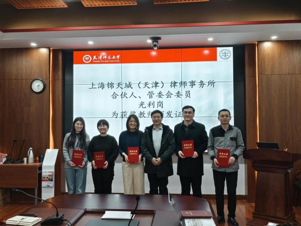 本站訊(通訊員 侯慧秀)1月7日,法學院“錦天城”獎教金頒獎儀式在學院澍澤報告廳舉行。上海錦天城(天津)律師事務所合伙人、管委會委員光利崗、王騰燕律師,法學院領導班子全體成員、全體教師參加頒獎儀式。