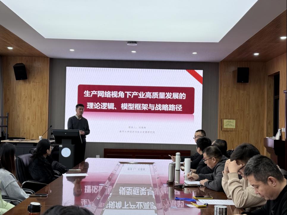 本站訊(通訊員 白帆)近日,經濟學院邀請南開大學經濟與社會發展研究院副院長劉維林教授做客經濟學院學術講壇,圍繞“生產網絡視角下產業高質量發展的理論邏輯、模型框架與戰略路徑”與學院師生展開深入交流。