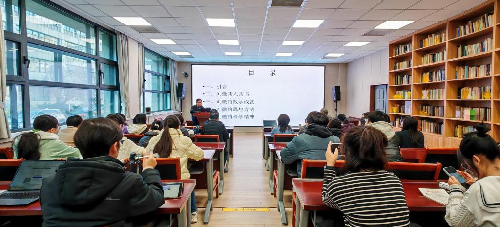 講座結束后,現場師生就劉徽的生平以及劉徽的科學精神等問題與鄒大海研究員進行了深入交流。同學們表示,劉徽超越時代的思想方法和科學精神,不但在古代世界閃耀著理性的光輝,即使在科學發達的今天亦毫不褪色。研究劉徽、學習劉徽,將給在科學道路上行進的學子以啟迪、激勵和力量。