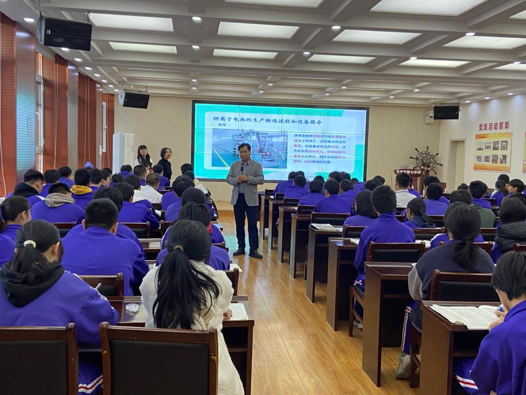 簽約儀式后,天津市特聘教授代克化舉辦“能量的奇妙旅程:探索鋰離子電池與未來儲能的秘密”科普講座,從人類能源史講起,回顧能源利用歷程,講解鋰離子電池工作原理、性能及優缺點,并分享中國在鋰離子電池研發和應用方面的成就及新研究方向。