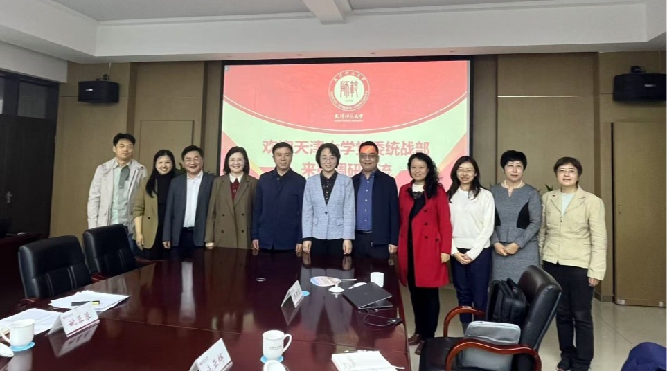 座談中,雙方就黨外人士思想引領、港澳臺學生教育管理等方面進行交流,重點圍繞鑄牢中華民族共同體意識教育的難點與未來展望進行了深入的探討。座談會后,雙方均表示希望今后以黨的二十大精神為引領,落實好天津師范大學與天津大學戰略合作協議,不斷深入學習交流,發揮統一戰線優勢作用,助力學校高質量發展。