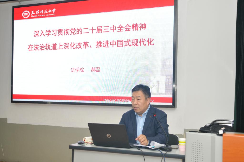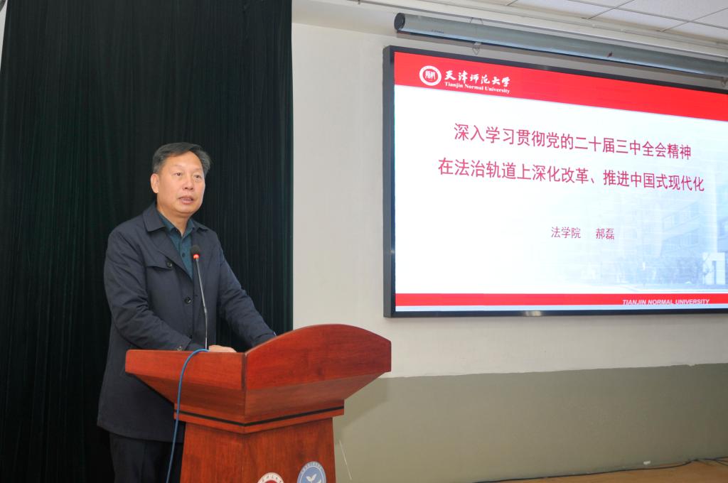 本站訊(通訊員 任一嬌 崔鵬 )為深入學習領會黨的二十屆三中全會精神,自覺把思想和行動統一到黨中央決策部署上來,把智慧和力量凝聚到落實全會確定的各項目標任務上來,推動全院興起學習宣傳貫徹熱潮。10月24日下午,學前教育學院舉行學習貫徹黨的二十屆三中全會精神宣講報告會,邀請天津師范大學法學院院長郝磊作宣講報告。全院教職工和學生入黨積極分子參加學習,報告會由學前教育學院黨委書記吳春發主持。