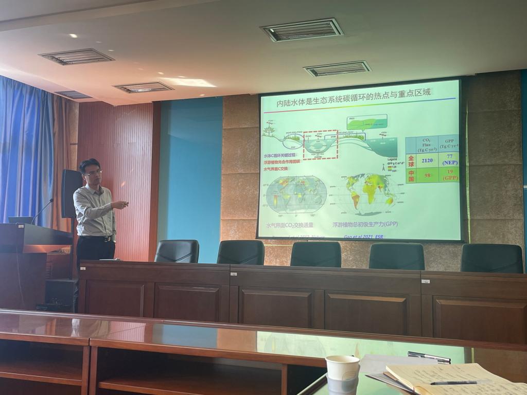 高揚系統總結了內陸水體固碳過程方面的研究進展,從湖泊碳輸送來源及其特征、浮游植物生產力與固碳、水-氣碳源匯時空動態等方面詳細介紹了其課題組近年來的最新研究成果,并展望了該領域的未來研究重點。高揚與師生就科研創新、人才培養、論文寫作、未來合作交流等話題進行了深入交流研討。