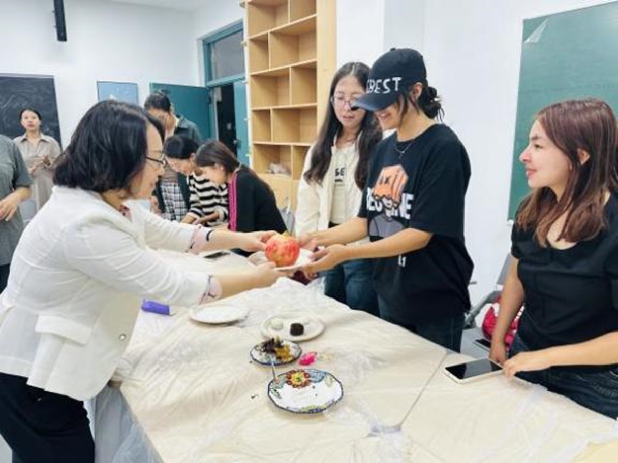 外國語學(xué)院消息(通訊員 陳乾坤)為深入學(xué)習(xí)貫徹習(xí)近平總書記關(guān)于加強和改進民族工作的重要指示精神,圍繞鑄牢中華民族共同體意識,積極響應(yīng)學(xué)校民族團結(jié)進步宣傳月活動的號召,9月12日,外國語學(xué)院在立教樓B317舉辦以“津沽石榴紅,共筑中國夢”為主題的師生中秋慶祝活動。學(xué)院領(lǐng)導(dǎo)班子成員、各職能辦公室老師及來自不同專業(yè)、民族和黨派的師生代表50余人歡聚一堂,分享民族風(fēng)情、制作冰皮月餅、話家常迎中秋。