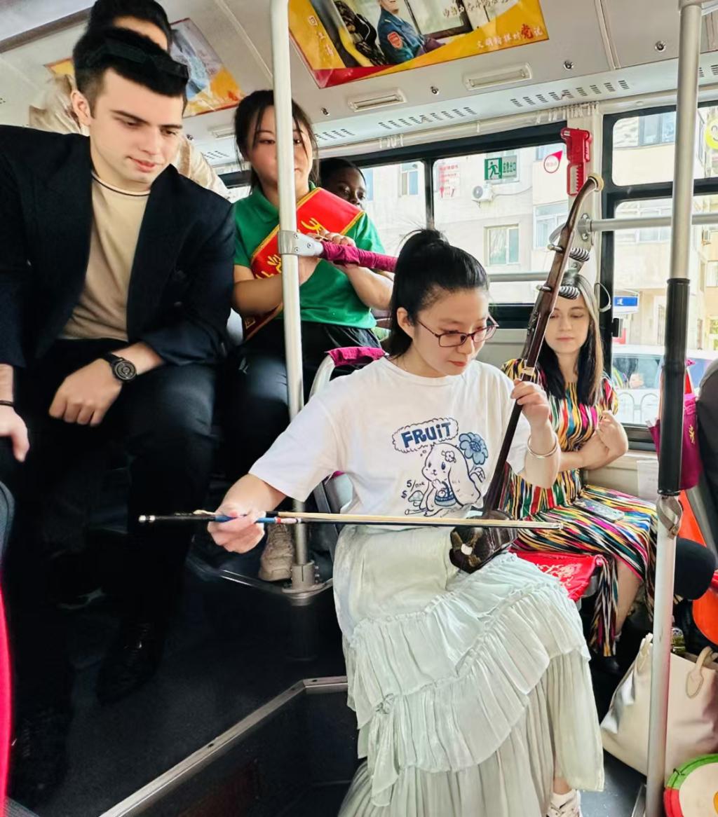 活動(dòng)伊始,“天津味道,世界共鳴”,中外師生共同演繹天津小曲《說(shuō)學(xué)逗唱》,既保留原汁原味,又融入現(xiàn)代元素,現(xiàn)場(chǎng)氣氛熱烈而歡快,車(chē)廂一下子熱鬧起來(lái)。