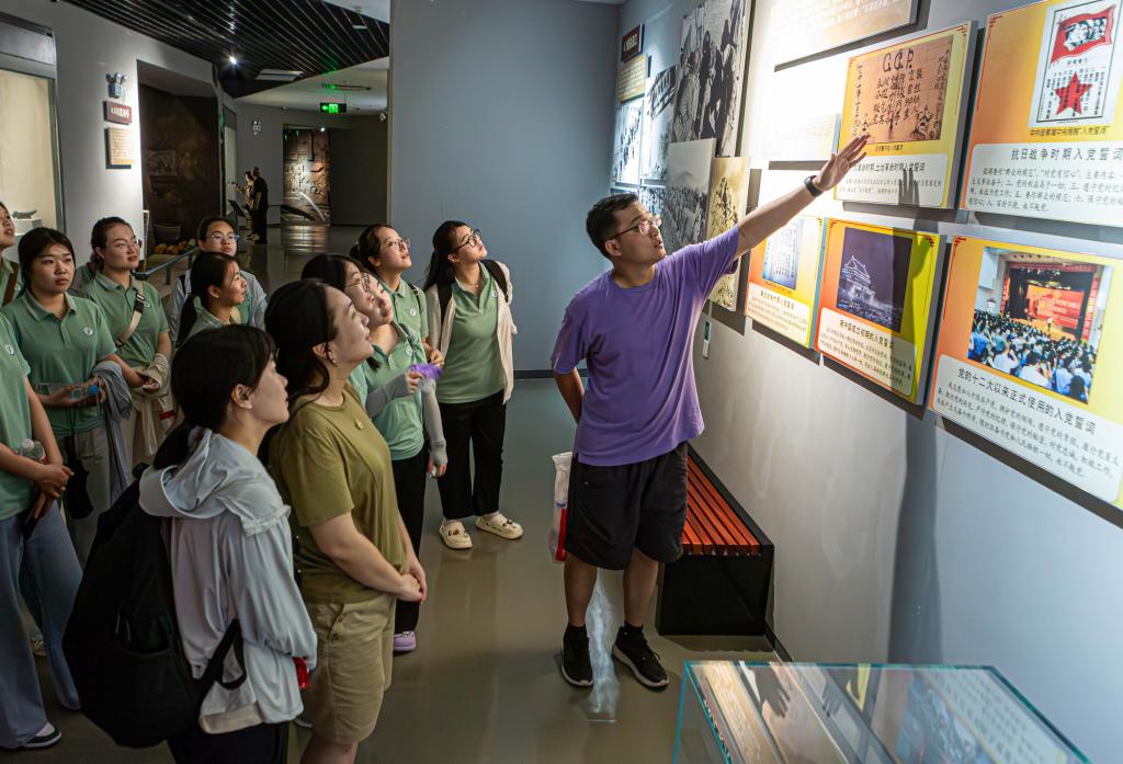 在楊子榮及牟平革命歷史紀念館,輔導員單一鳴、鮑鵬結合史實進行思政課實踐教學,成員們紛紛表示被革命先輩們堅定的理想信念、無私的奉獻精神和大無畏的英雄氣概所感染。