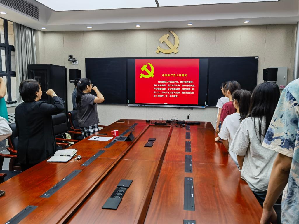 數學科學學院消息(通訊員 郭小瑋)為慶祝中國共產黨成立103周年,進一步發揮學院黨建引領示范作用,切實增強黨員對黨紀黨規的深刻理解與堅定遵循,推動黨紀學習教育走深走實,6月28日,數學科學學院黨委舉行新黨員入黨宣誓儀式。院黨委書記張寧出席會議并講話,院黨委副書記兼紀委書記彭永剛講授廉潔教育專題黨課。學院學生工作辦公室主任王建君、輔導員孫賀、李雨桐,2024年新發展黨員、2024屆畢業生黨員參加活動。