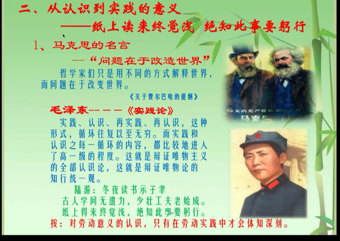李海濤老師詳細講解了馬克思主義勞動觀的理論知識、從認識到實踐的意義,并聯系自身的實踐經歷,分享其生活感悟,對學子做出了“到勞動中去”的未來展望。談及此次講座題目的選取,李海濤老師談道,得知講座的主題后《國際歌》第三段歌詞在他腦海中閃現,“是誰創造了人類世界,是我們勞動群眾”旋即讓他確定下講座的副題——到勞動中去。