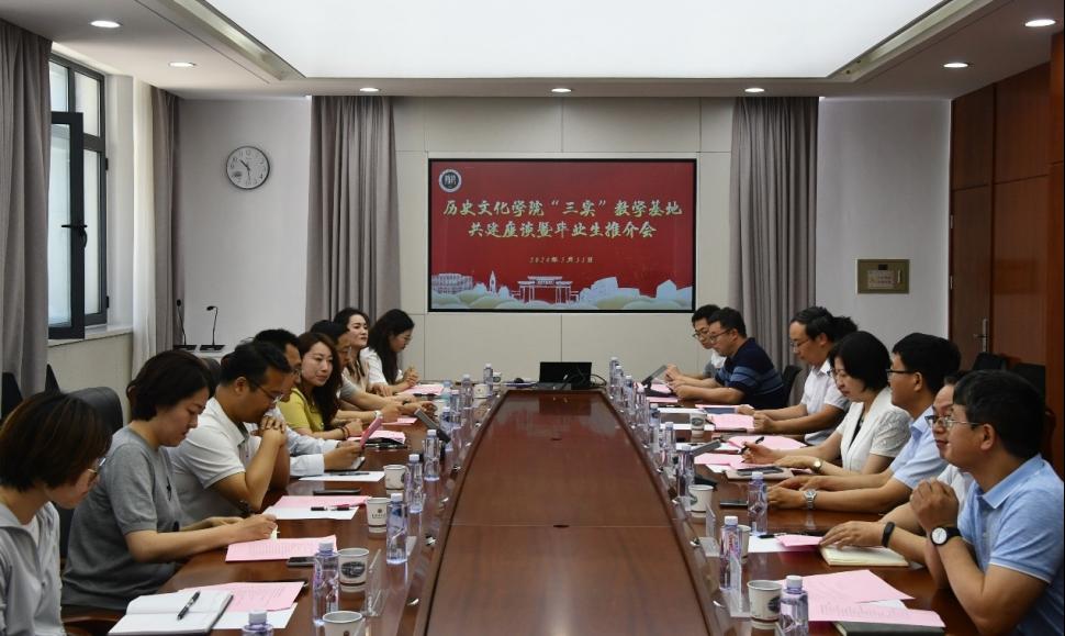 歷史文化學院消息(通訊員 晏莉)歷史學聯合黨委在畢業生“就業百日沖刺”階段,將畢業生去向落實同學生實習實訓實踐培養共同謀劃,于5月31日召開歷史文化學院“三實”基地共建座談會及畢業生推介會,天津博物館、天津文化遺產保護中心、天津保稅區等十三家合作單位代表、歷史文化學院全體領導班子成員、各系主任、基地聯系教師、就業事務輔導員參加會議。