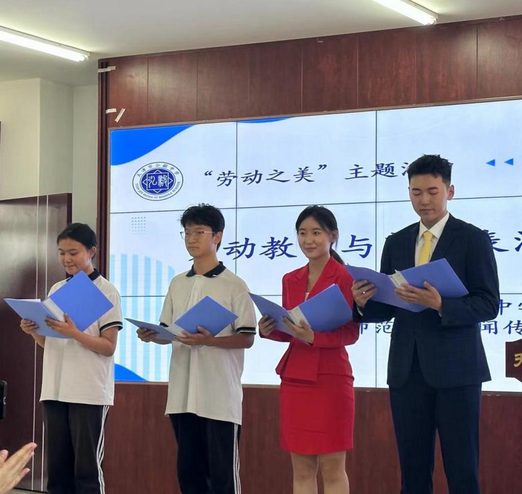 秉承著“推廣朗誦藝術、增進校園文化建設”的理念,天津師范大學播音與主持藝術專業的同學們走進弘毅中學,開展勞動教育與朗誦表演藝術交流活動。播音學子與中學生代表一起同臺主持,活動現場洋溢著青春的氣息。