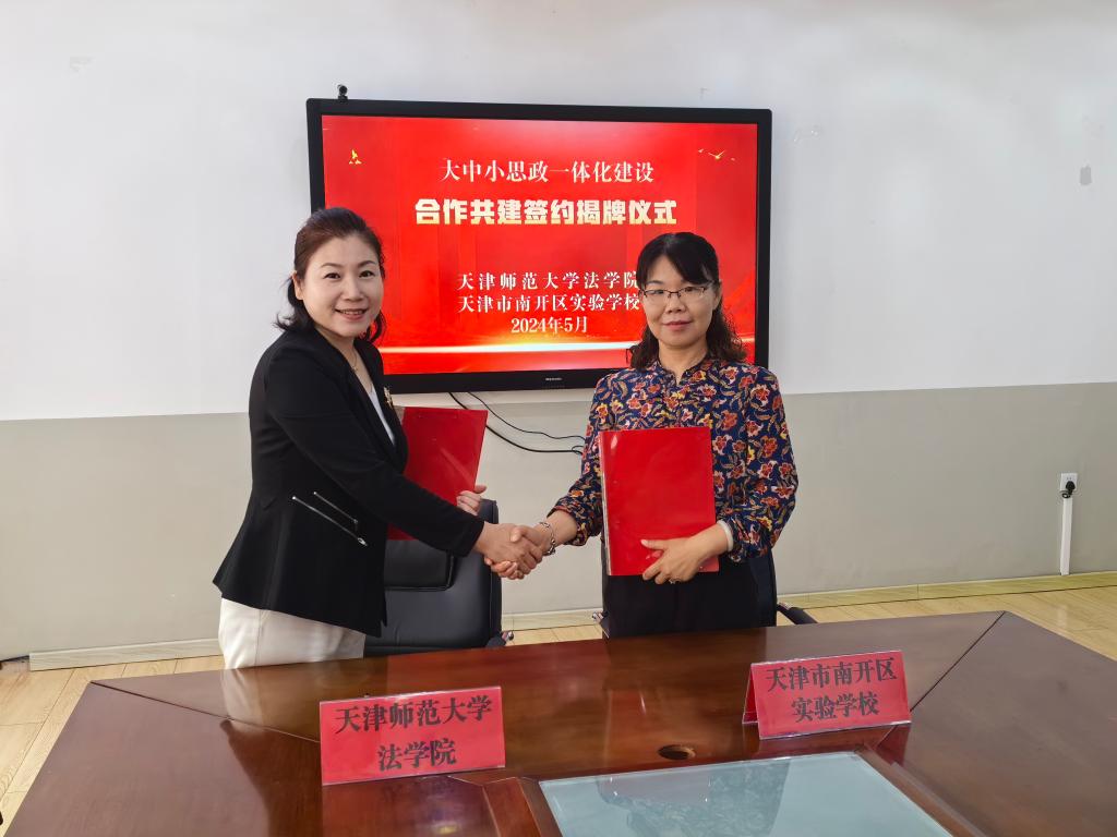 法學院與南開區實驗學校共同簽署了合作共建協議書,并正式揭牌大中小“思政一體化”法治教育實踐基地,標志著雙方在法治教育和愛國主義教育領域將開展更為緊密和深入的合作,共同致力于提升中小學生的法治素養和愛國情懷。