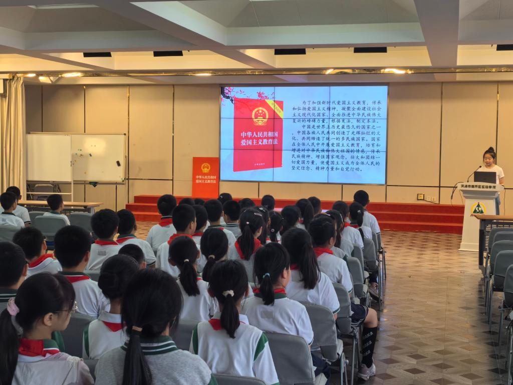 儀式結束后,法學院的學生志愿者們迅速投入到了宣講活動中。他們通過生動形象的講解和互動,向南開區實驗學校的孩子們介紹了《愛國主義教育法》的立法背景和重要意義,引導他們樹立正確的國家觀念,激發他們的愛國情感和民族自豪感。