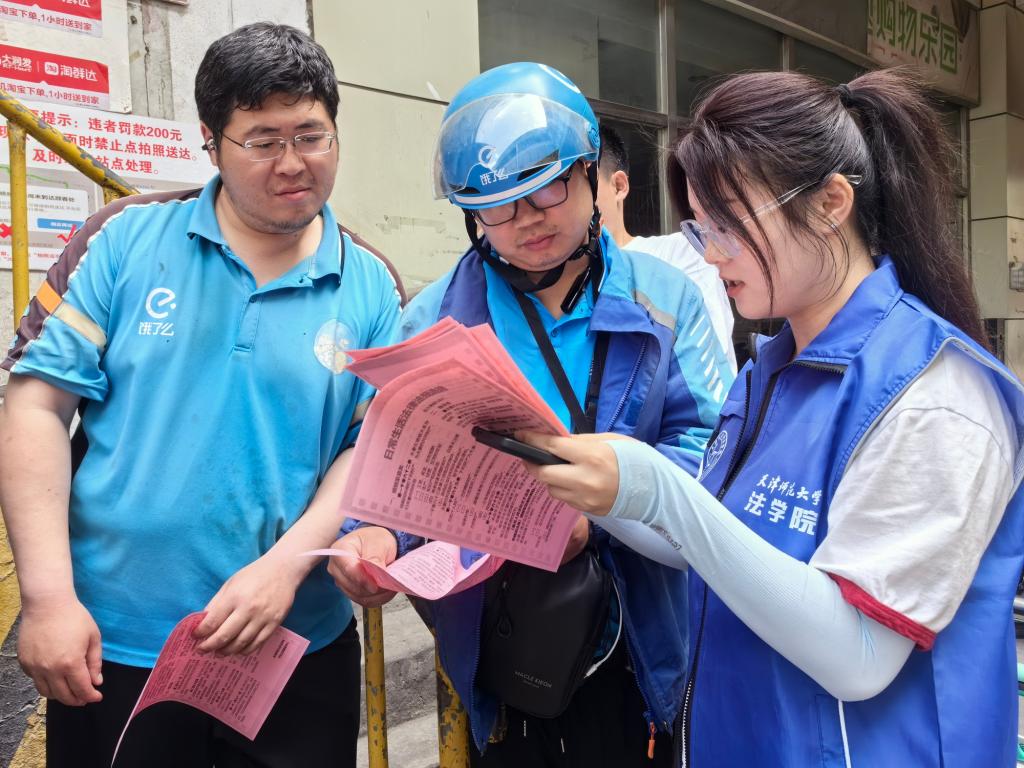 法學院師生一行先后前往淘鮮達驛站、博疆菜市場、景雅里社區,圍繞新就業群體、商戶、居民的現實需求,開展精準普法。“戶內下水管的主管道破損漏水,應由該戶居民、全體使用業主還是物業負責?”“快遞員送快遞發生事故,醫療費用和賠償費用由外包公司還是平臺負責?”“在市場買菜意外滑倒,應該是誰的責任?”針對群眾提出的具體問題,師生結合民法典有關物業管理、侵權責任、民間借貸、遺囑訂立承擔等具體規定答疑解惑。送法上門提升了普法的精準性和實效性,也得到了大家的一致認可。
