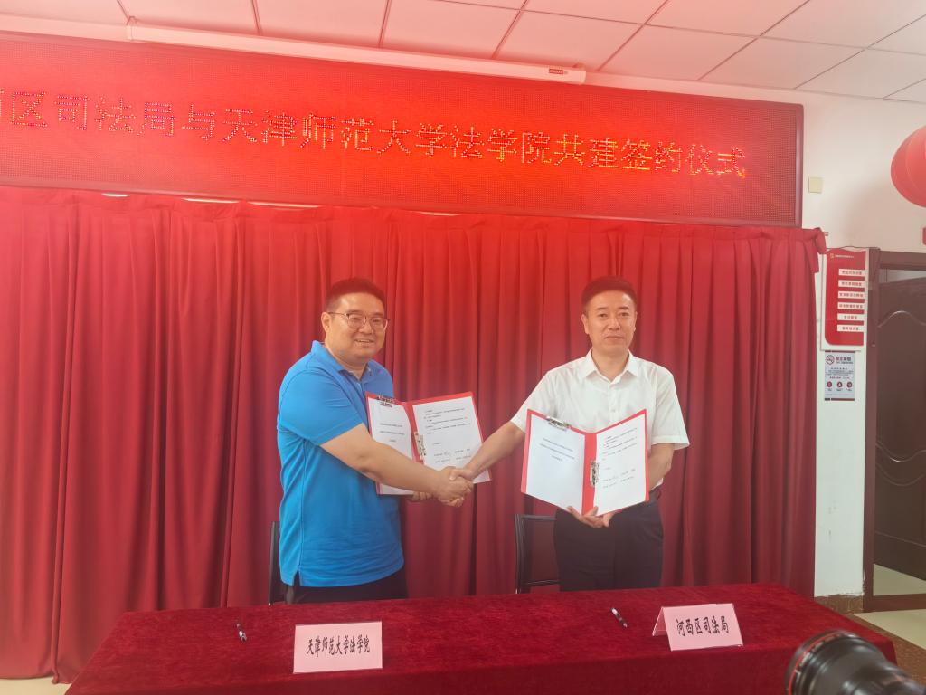 活動中,法學院與河西區司法局、柳林街道簽訂了共建協議,成立了現代法律人才培訓與法治宣傳教育實踐基地,與會領導參加了簽約掛牌儀式。