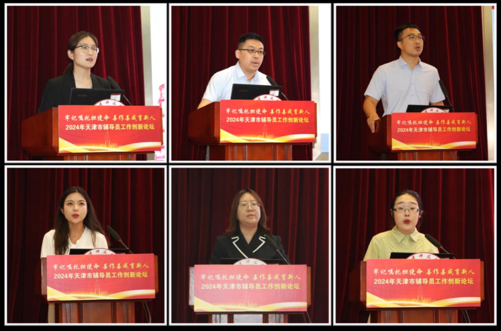 “牢記囑托擔使命 善作善成育新人”輔導員工作創新論壇上,天津外國語大學李瑤、天津商業大學劉海東、天津體育學院蘇俊豪、天津師范大學賀潔瑞、天津中德應用技術大學崔曉琳、天津理工大學楊祎心作交流發言,圍繞學生黨建、實踐育人、文化育人、學風建設、勞動教育、組織育人等特色工作進行經驗分享。