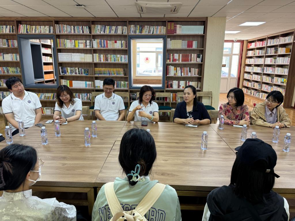 在翔宇弘德學校校長李翠玲的帶領下,師生一行先后參觀了特色圖書館、楷模教育走廊等文化育人特色區。座談會上,李翠玲對學校辦學特色、育人理念等內容進行了介紹,他表示學校十分注重教師隊伍的建設與培養,定期開展教師培訓、教研等活動,為教師職業發展提供了有力支持和保障。隨后,史曉晨介紹了學院在人才培養、學科建設、畢業生就業指導、學生特色活動等方面的情況,雙方就實習就業深化合作進行深入交流。