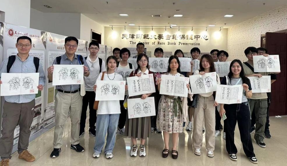 在古籍保護(hù)中心,造紙術(shù)、印刷術(shù)的發(fā)明歷程和古籍的制作過程,打開了游學(xué)團(tuán)成員了解中國傳統(tǒng)文化的窗口,動(dòng)手參與古籍雕版水印——“動(dòng)畫門神”與“三字經(jīng)”的刷版、印制過程,更是讓大家收獲滿滿,意猶未盡。