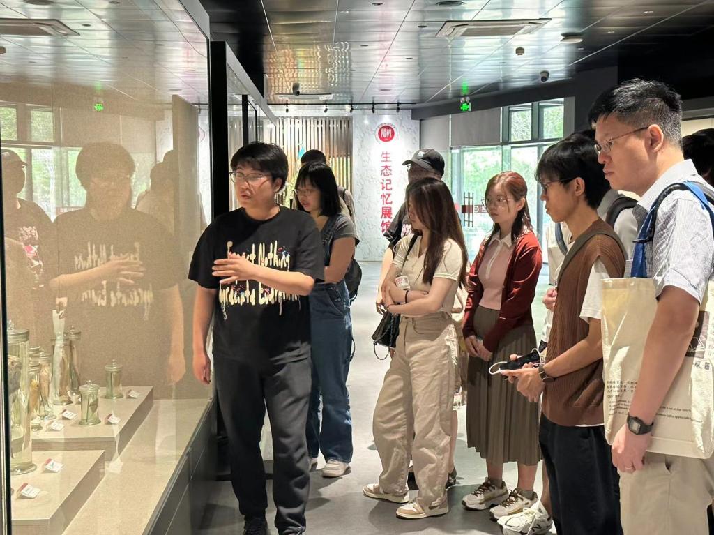 在生態(tài)記憶展館,展柜中琳瑯滿目的標(biāo)本記錄著校園生態(tài)逐步豐富、完善的建設(shè)發(fā)展過程。“這個(gè)標(biāo)本是怎樣獲得的?”“制作這只彩蝶標(biāo)本需要脫水處理嗎?”面對游學(xué)團(tuán)成員的提問,展館志愿者耐心答疑,扎實(shí)的專業(yè)知識和親切熱情的態(tài)度,給游學(xué)團(tuán)留下了深刻的印象。