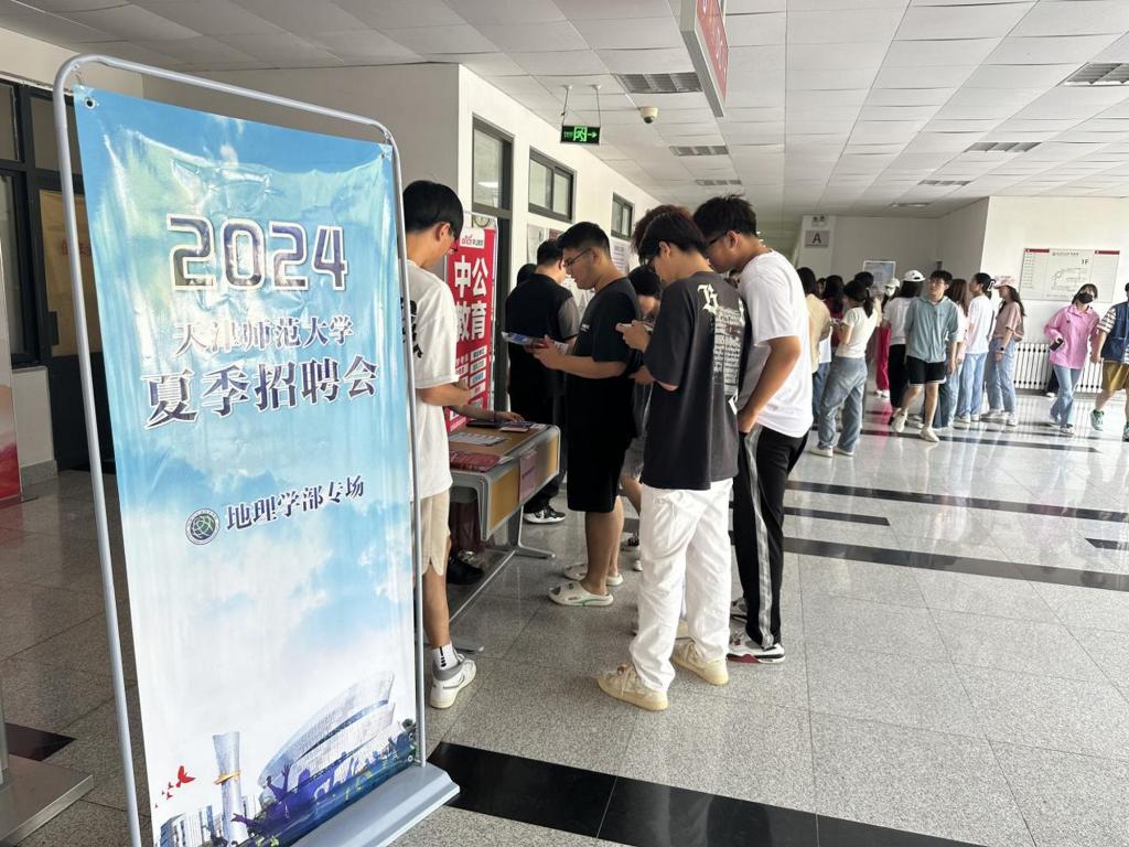 在地理學(xué)部2024年夏季專場(chǎng)招聘會(huì)現(xiàn)場(chǎng),畢業(yè)生紛紛向心儀的用人單位投遞簡(jiǎn)歷,與用人單位面對(duì)面交流,詢問用人單位的人才需求、崗位特點(diǎn)和企業(yè)文化,現(xiàn)場(chǎng)人頭攢動(dòng),氣氛熱烈。招聘會(huì)吸引了包括學(xué)而思教育、中公教育等行業(yè)領(lǐng)軍企業(yè)在內(nèi)的眾多用人單位參與,為畢業(yè)生提供了涵蓋教育培訓(xùn)、技術(shù)研發(fā)、市場(chǎng)營(yíng)銷、人力資源等多個(gè)領(lǐng)域的優(yōu)質(zhì)崗位。