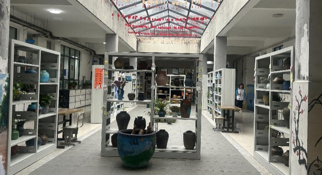 當學(xué)訪團踏進教學(xué)樓時,瞬間被富有書香、綠意、文化的氛圍感染。在這棟教學(xué)樓里,隨處布置著學(xué)生帶來的陶瓶陶罐,開放式的圖書架肆意地擺放在教室門口、樓宇大廳,到處可見的植物映入眼簾。“學(xué)校就是圖書館、學(xué)校就是博物館、學(xué)校就是藝術(shù)館”的建設(shè)理念更是讓學(xué)訪團成員驚嘆不已。