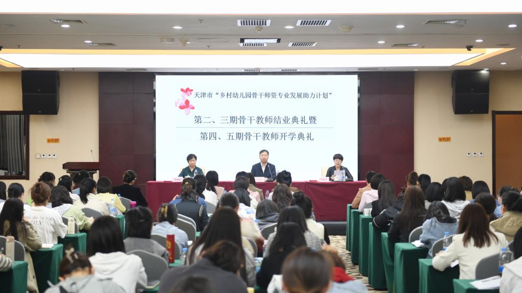 學(xué)前教育學(xué)院消息(通訊員 賈佳琪 張冬瑞)為深入貫徹習(xí)近平總書(shū)記視察天津重要講話精神,高標(biāo)準(zhǔn)踐行“四個(gè)善作善成”重要要求,秉承“以高質(zhì)量教師教育助力鄉(xiāng)村教育振興”的宗旨。日前,學(xué)前教育學(xué)院充分發(fā)揮教師培養(yǎng)經(jīng)驗(yàn),順利完成“天津市鄉(xiāng)村幼兒園骨干師資專(zhuān)業(yè)發(fā)展助力計(jì)劃”(以下簡(jiǎn)稱(chēng)“助力計(jì)劃”)第二、三期培訓(xùn)工作,啟動(dòng)第四、五期學(xué)員的培訓(xùn)工作。學(xué)院黨委書(shū)記吳春發(fā)、副院長(zhǎng)蘇愛(ài)潔及200余名參訓(xùn)教師參加典禮。典禮由天津市幼兒師資培訓(xùn)中心主任李煥穩(wěn)主持。
