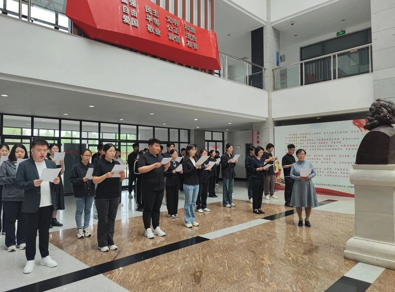 董新春教授帶領(lǐng)全體師生共同齊誦《共產(chǎn)黨宣言》,表達(dá)了對(duì)馬克思偉大人格的崇敬和對(duì)馬克思主義科學(xué)真理的堅(jiān)定信念。全體師生向馬克思雕像敬獻(xiàn)鮮花、齊唱《國(guó)際歌》,寄托了對(duì)革命導(dǎo)師的深切緬懷,向人類歷史上最偉大的思想家致敬。