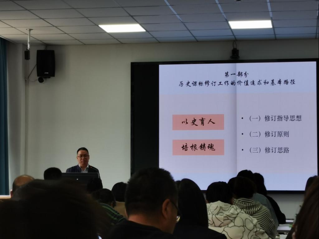 王玉亮作了題為“以義務(wù)教育歷史課標(biāo)(2022年版)為指導(dǎo)持續(xù)改進(jìn)歷史教學(xué)”的主題報(bào)告,報(bào)告詳細(xì)介紹了大中小歷史教育教學(xué)一體化情況,解讀了不同階段教育教學(xué)的目標(biāo)要求,并以具體實(shí)例生動(dòng)展現(xiàn)了初中歷史教育教學(xué)的嚴(yán)謹(jǐn)性、科學(xué)性。