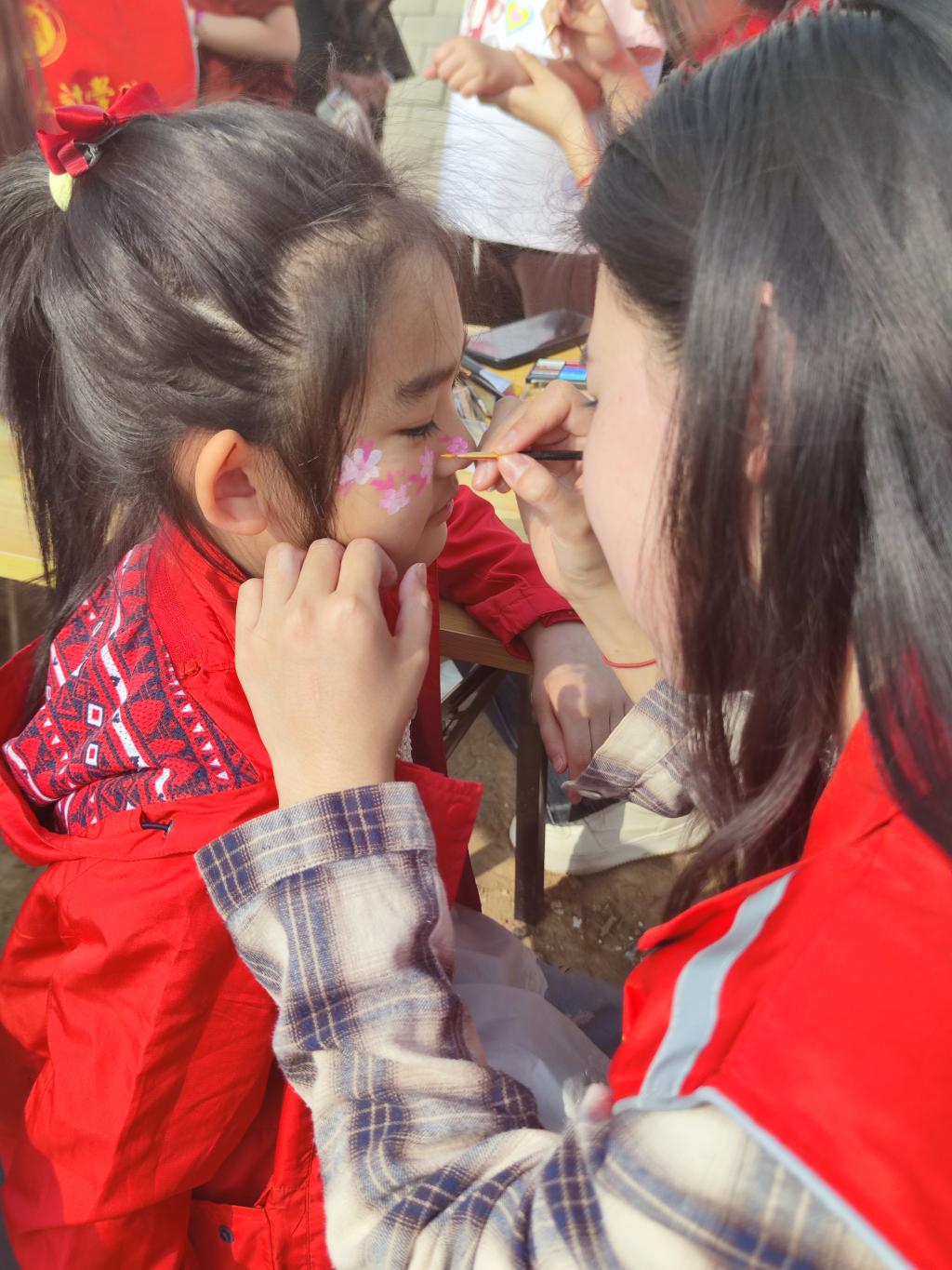 美術(shù)與設(shè)計學(xué)院志愿者們精心策劃彩繪活動為梨花節(jié)活動錦上添花,拉滿了人氣。同學(xué)們使用環(huán)保顏料,將精心設(shè)計的圖案描繪在小朋友們的臉龐和手臂上。活動受到了到場群眾的熱烈歡迎,不僅小朋友們積極參與,許多家長也躍躍欲試。在短短兩天的活動中,學(xué)院志愿者先后為到場大朋友、小朋友們繪制彩繪500余人次。涂滿彩繪的笑臉與春日盛開的梨花相映成趣,讓村民群眾感受到了梨花之美,享受了藝術(shù)之美,體驗了文化之美,更激發(fā)了許多小朋友們對繪畫藝術(shù)的興趣和熱愛。