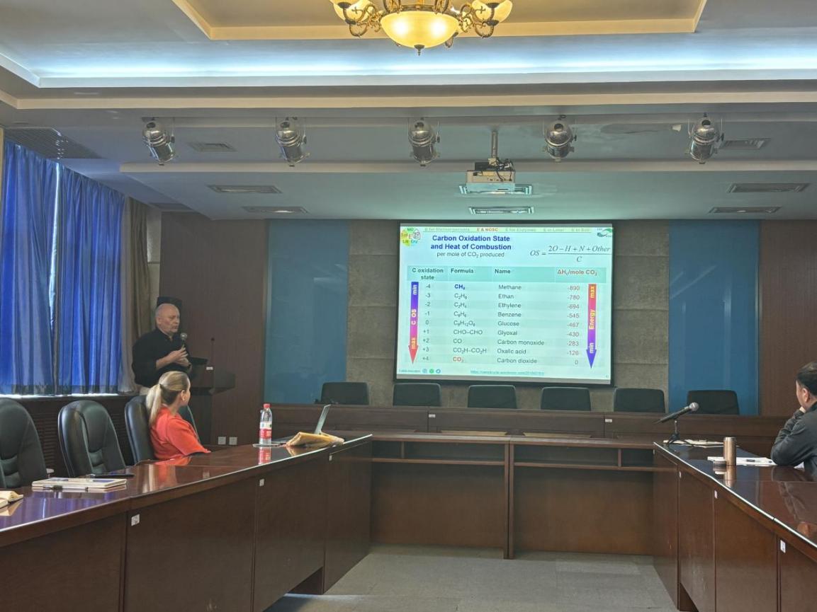Yakov Kuzyakov教授以《From energy to (soil organic)matter》為題進行學術講座,解析了微生物能量利用效率(Energy Use Efficiency, EUE)與碳利用效率(Carbon Use Efficiency, CUE)之間的關系,闡述了微生物利用天然有機質的主要目的是獲取能量而非碳源的新觀點,并以此加深理解沉積物/土壤有機質的形成與穩定。期間,Yakov Kuzyakov教授與我校師生開展了深入交流研討,為學生答疑解惑。