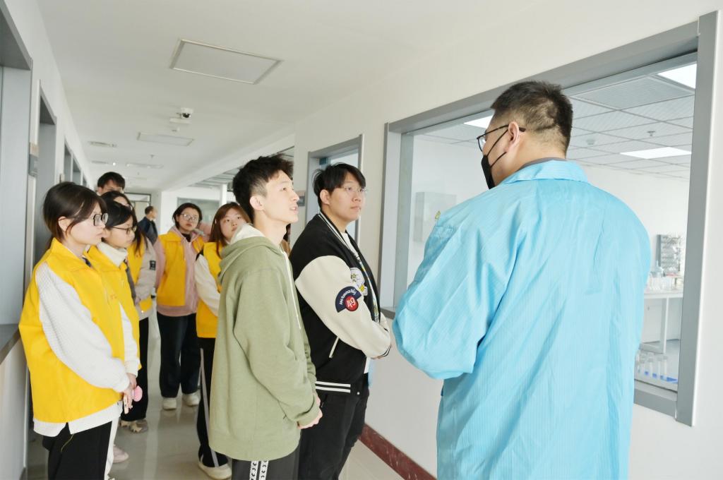 在天津鑄金科技開發股份有限公司,師生一行在公司負責人的帶領下,先后參觀了檢測設備實驗室、科研開發實驗室等地。在交流會上,公司監事會主席王高紅介紹了企業發展歷程、企業產品研發和實踐領域、未來應用前景以及當前企業崗位招聘要求等。同學們主動交流、積極提問,并在現場投遞簡歷。