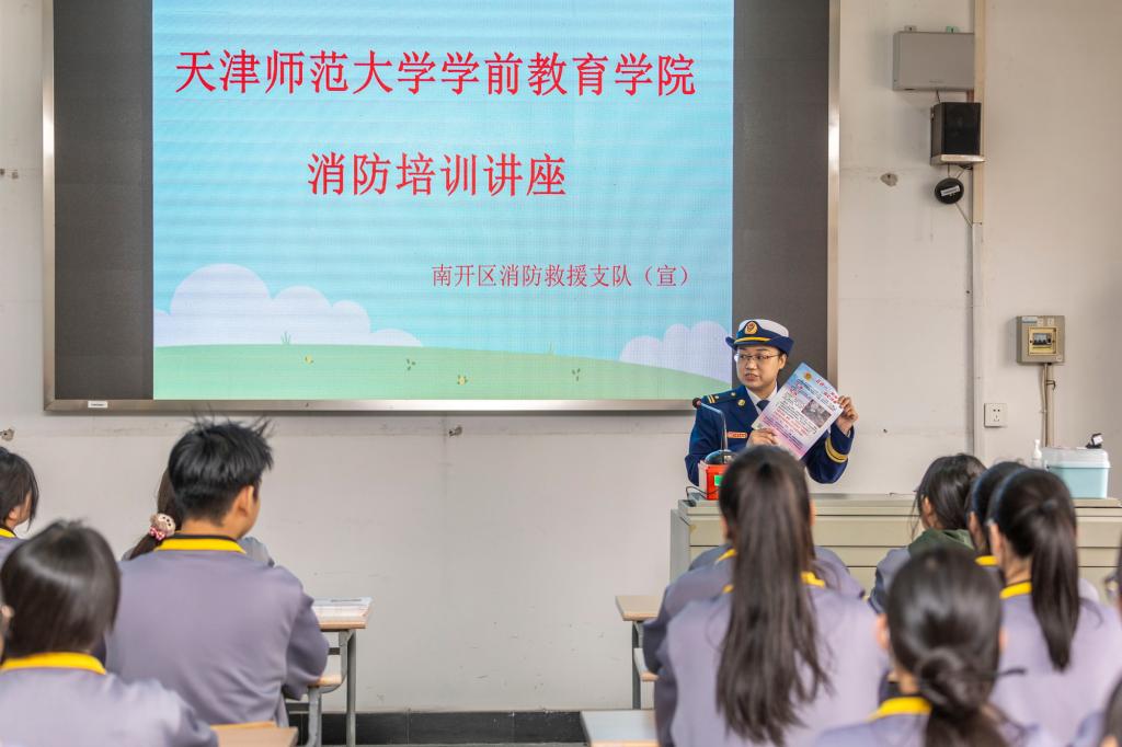 活動伊始,南開區消防救援支隊指揮長梁娟、班長劉少為師生們開展了一場生動而富有教育意義的講座。消防支隊的專家們結合火災案例講解和分析,從火災的危害性入手,詳細講解了火災的成因、防火滅火常識以及滅火器、逃生面具的使用方法。同時,專家還結合校園實際,普及了逃生常識和消防疏散演練注意事項。講座過程中,師生們積極參與互動,紛紛提出自己在日常生活中遇到的消防安全問題。專家耐心解答,并提醒大家要時刻保持警惕,提高消防安全意識。