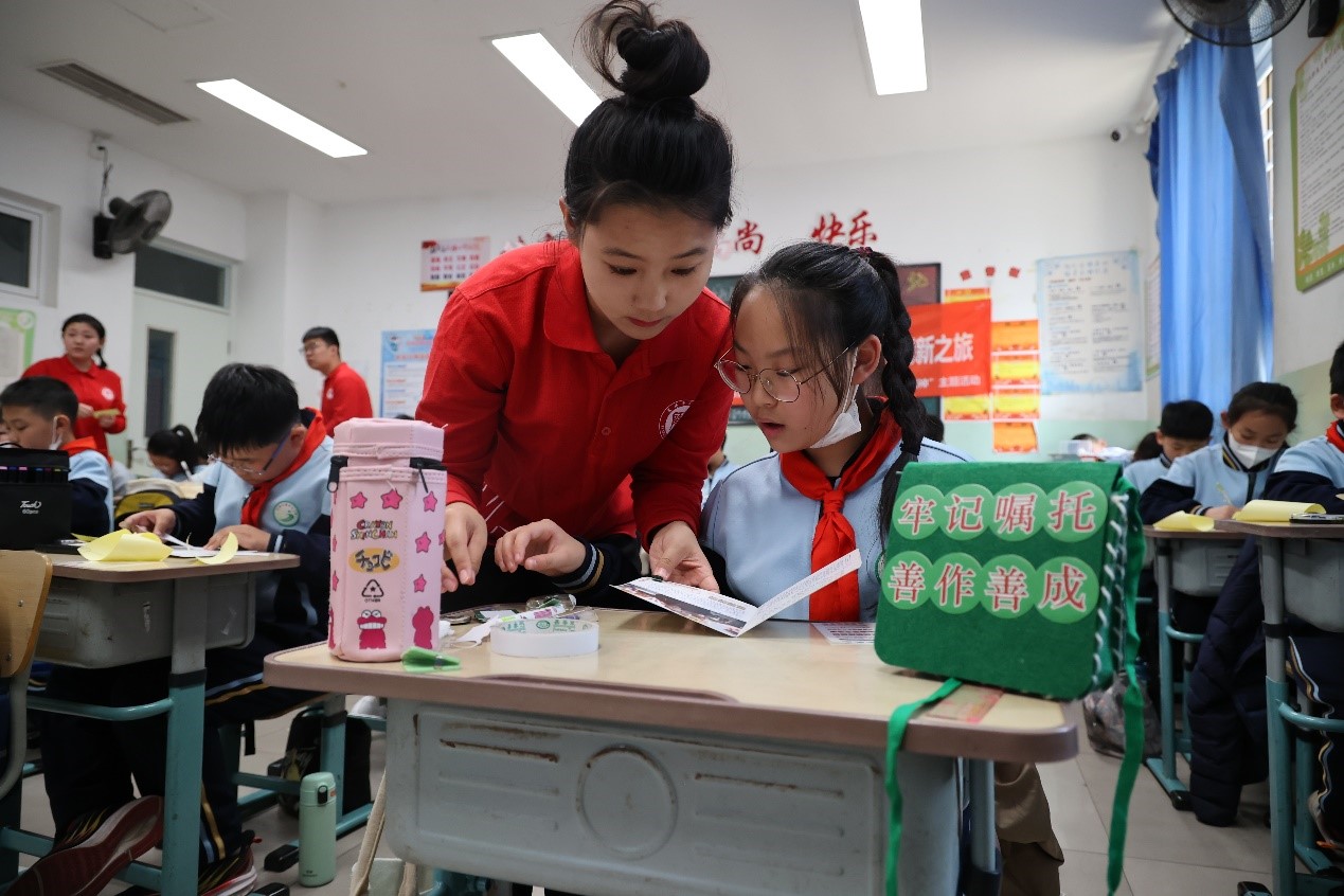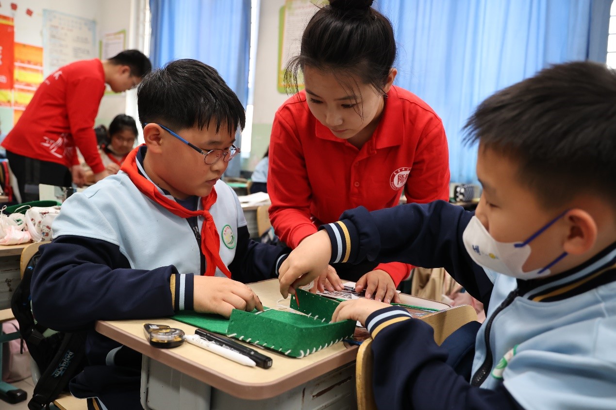 縫制紅軍包環節將活動氣氛推向高潮。實踐團成員指導學生們親手縫制紅軍包,并將“牢記囑托 善作善成”的字樣張貼在包上,為學生們牢記總書記囑托,厚植愛國主義情懷埋下了種子。