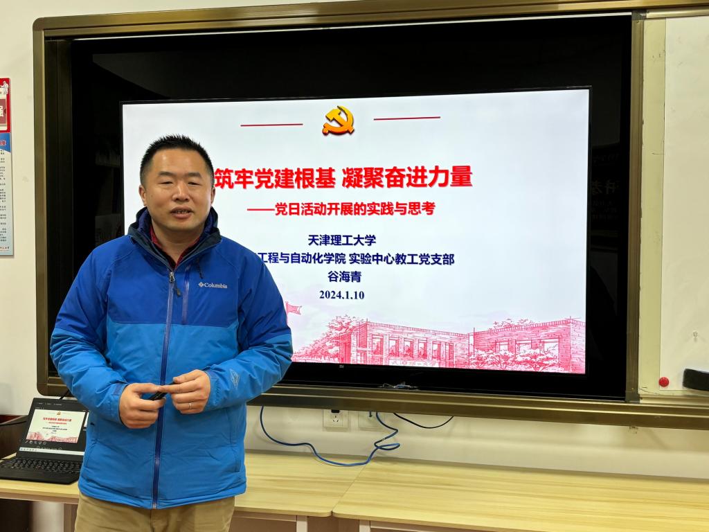 谷海青以《筑牢黨建根基 凝聚奮進(jìn)力量——黨日活動(dòng)開(kāi)展的實(shí)踐與思考》為主題,從做好規(guī)定動(dòng)作,在“學(xué)思”上下功夫、創(chuàng)新實(shí)踐載體,在“踐悟”上下功夫和服務(wù)中心工作,在“力行”上下功夫三個(gè)方面,介紹了他帶領(lǐng)黨支部開(kāi)展支部建設(shè)和主題黨日活動(dòng)上的豐富經(jīng)驗(yàn)。活動(dòng)中,谷海青還結(jié)合所在支部獲評(píng)第二批新時(shí)代天津市高校黨建“領(lǐng)航工程”創(chuàng)建培育單位建設(shè)情況,和“以學(xué)生科技活動(dòng)為抓手,創(chuàng)新師生黨建協(xié)同機(jī)制”天津市教育系統(tǒng)“創(chuàng)最佳黨日”優(yōu)秀活動(dòng)情況與大家進(jìn)行了充分交流。