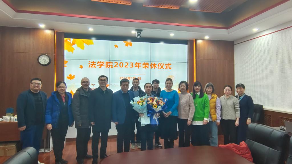 法學院消息(通訊員 王欣)1月4日,法學院在澍澤學術報告廳舉行2023年退休教師榮休儀式。阮大強、彭炳金兩位退休教師和學院領導班子成員出席儀式,基礎法學教研部、訴訟法學教研部全體在職教師和學院行政人員參加儀式。
