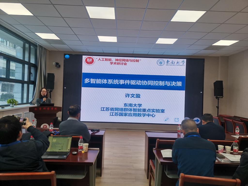研討會上,四川大學楊鑫松教授、中國礦業大學朱松教授、東南大學許文盈教授和楊紹富教授、中國石油大學(華東)王健教授、中國地質大學(武漢)王雷敏教授、哈爾濱工業大學(威海)秦泗甜教授以及我校數學科學學院周立群教授和劉娜博士等多位專家學者圍繞切換系統協同控制、憶阻系統理論及應用、多智能體系統協同控制與決策、復雜神經網絡同步控制、神經動力學優化理論和算法等介紹了各自領域的最新研究進展及研究成果。參會人員認真聽取報告,并從科學問題、交叉合作和應用研究等方面與各位報告人展開了熱烈討論。