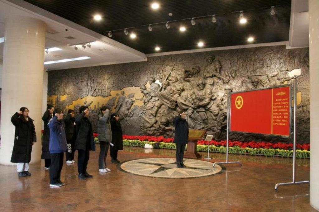 學院師生代表跟隨講解員參觀了烈士陵園建國后紀念館和革命烈士紀念館。珍貴的圖片和實物史料、烈士的感人故事,讓大家重溫先輩浴血奮斗的偉大精神。新聞傳播學院2023年新一批入黨和入團學生代表在紀念館浮雕墻前進行宣誓。