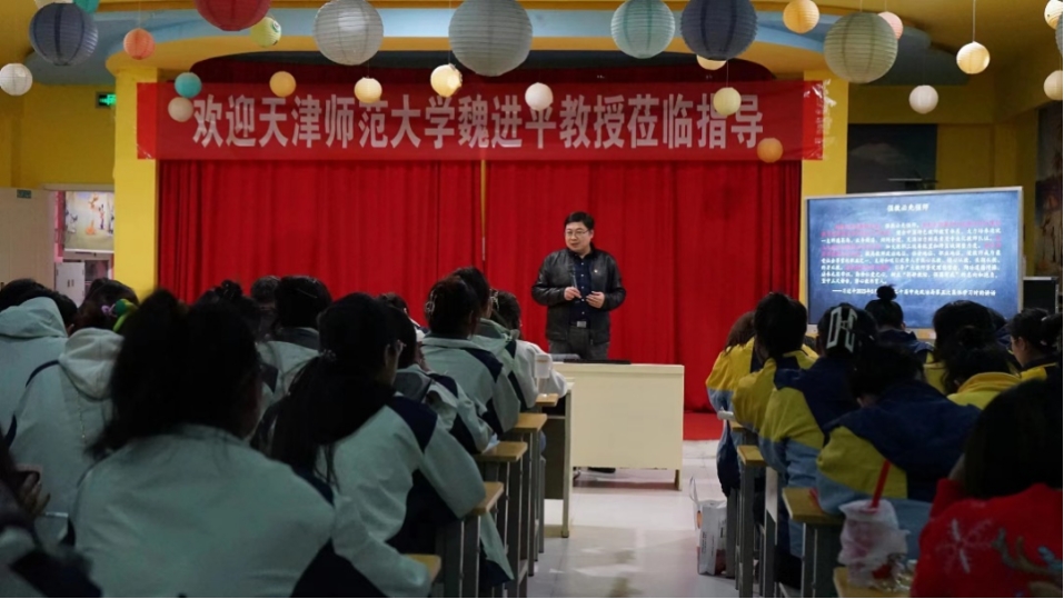 魏進平圍繞大力弘揚教育家精神的底色、鑄牢中華民族共同體意識教育的基點以及新時代大中小幼責任意識教育的標準三方面作了全面細致的講解。他表示,要統籌運用集體學習、專題輔導、交流研討等形式,深入學習宣傳貫徹習近平新時代中國特色社會主義思想,切實把理論知識轉化為人民教師以及黨員干部的自覺行動。要深刻把握知識學習的重要性,要將學科知識與教育工作緊密結合,從新思想中找工作遵循、找方位、找依據、找方法,以更加昂揚的姿態邁進新征程、建功新時代,答好新時代教育事業的必答題,確保教師工作正確的政治方向。魏進平對援疆支教學生的辛勤付出與無私奉獻予以充分肯定,他鼓勵同學們繼續秉承“勤奮嚴謹 自樹樹人”校訓精神,爭做有理想、敢擔當、能吃苦、肯奮斗的新時代好青年,奉獻和田地區基礎教育,讓青春之花在不懈奮斗中絢麗綻放。