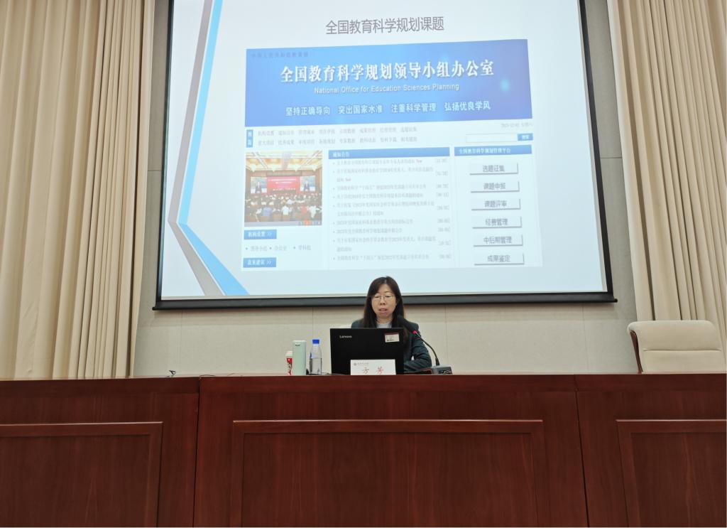 天津市教科院教育法治與發展規劃研究所所長方芳研究員分享了全國教育科學規劃課題的申報經驗。她從申報人的角度全面分析了全規辦六類課題的選報經驗,要根據國家需求與政策導向確定選題,好的選題需要申報人認真研判選題指南,要有超前預判意識,及時關注時事熱點,既要突出學科性,又要找到最佳契合點。她以自身為例詳細剖析了“發現選題-確定選題方向-最終確定題目”的三大階段,同時為申報人如何從客觀和主觀兩個方面對課題可行性論證提供了思路和方法。
