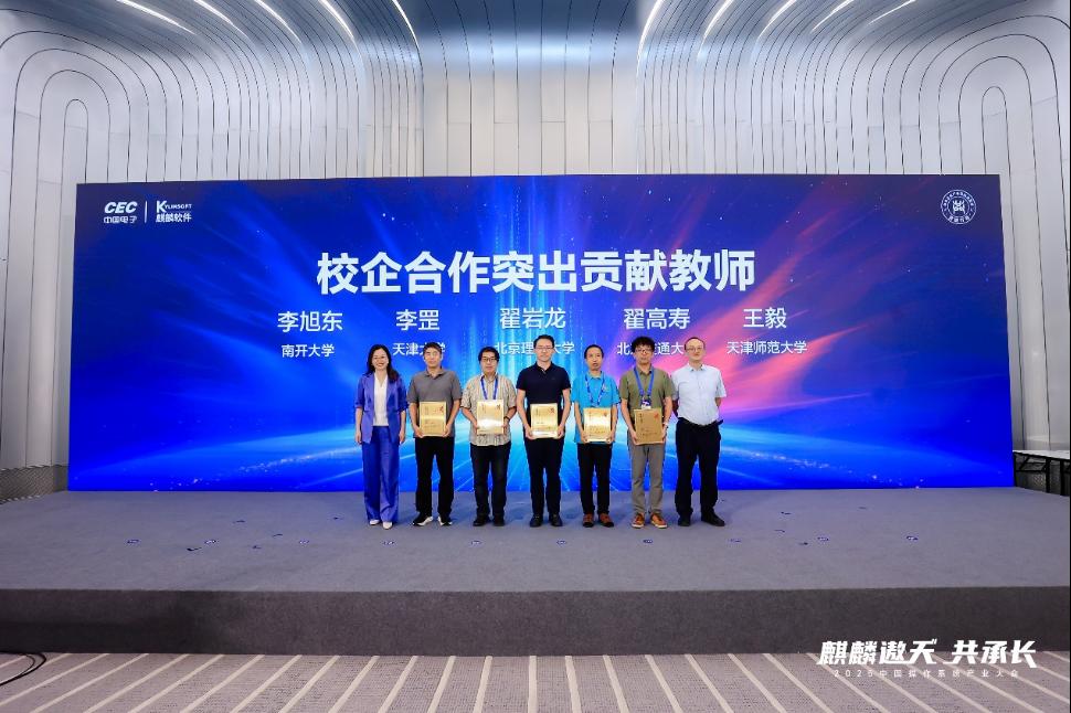 本站訊(通訊員 梁月)近日,以“共承長·聚生態·育英才”為主題的2025操作系統與網信人才生態大會在北京隆重舉行。本次大會由麒麟軟件公司主辦,匯聚了工業和信息化部、教育部等相關部委領導,以及來自全國頂尖高校、科研機構和產業鏈上下游企業的200余名專家學者,共同擘畫人工智能時代下操作系統與網信人才生態建設的新藍圖。我校電子與通信工程學院(人工智能學院)作為麒麟軟件的重要戰略合作伙伴應邀出席活動。大會上,我校電子與通信工程學院(人工智能學院)榮獲“校企合作優秀院校”稱號,教師王毅榮獲“校企合作突出貢獻教師”稱號。