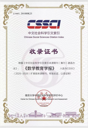 《數學教育學報》入選為CSSCI(2025-2026)擴展版來源期刊。