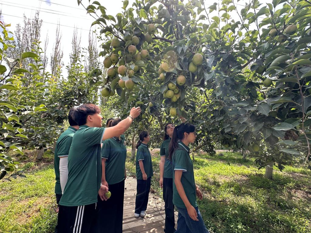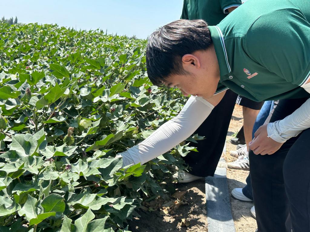 帶著對文化根基的深刻理解,實踐團的目光投向庫爾勒鄉村振興的生動圖景。在香梨飄香的果園和廣袤的智慧棉田,成員們詳細考察特色林果品牌建設與智能化管理體系,深入了解到國家通用語言是打通電商渠道、助力農產品“出疆入津”的市場密鑰,更是普及智能灌溉技術、培育新型農民的核心工具。
