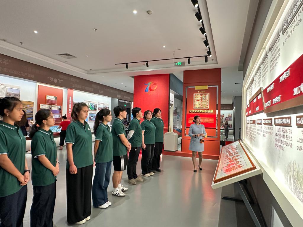 實踐團抵達庫爾勒后的首項實踐,即深入庫爾勒市鑄牢中華民族共同體意識展廳與民俗博物館,進行沉浸式文化溯源與認同培育。緊隨其后,團隊奔赴胡楊林園,躬身踐行“艱苦奮斗、自強不息、扎根邊疆、甘于奉獻”的新時代胡楊精神,堅定了實踐團成員以推普促進民族團結、投身中國式現代化建設的青春志向。