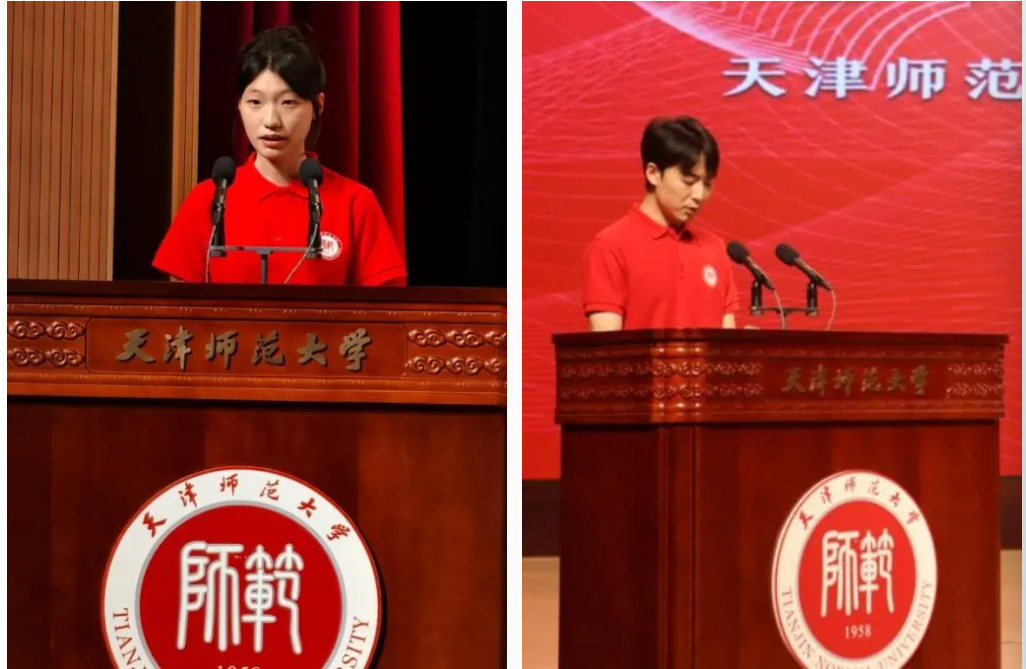 新生代表2025級數字媒體藝術專業侯雅馨、2025級美術與書法方向研究生李淵分別發言,她們表達了對大學生活的憧憬,并表示要努力錘煉專業本領,用優秀的藝術實踐成果傳承中國文化精神。