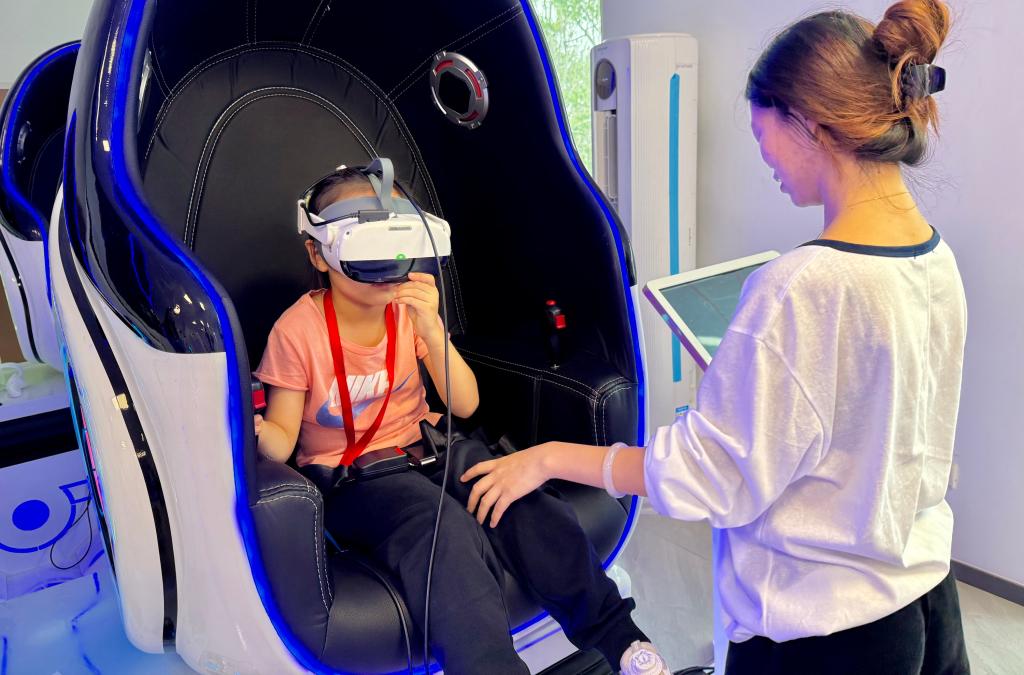 隨后,十余名研究生志愿者引導孩子們開展沙盤互動、VR探秘、“我畫我心”等活動。沙盤互動環節,孩子們通過構建自己的沙盤世界,在方寸之間展現內心豐富的情感與想象,讓內心的世界得到了充分展現和釋放。在VR探秘環節,借助虛擬現實技術,孩子們仿佛身臨其境,親身感受大腦的神奇運作。佩戴上VR眼鏡后,實驗室內隨即響起了陣陣驚嘆聲。志愿者在一旁細心觀察孩子們的反應,適時講解VR場景中的科學知識。在“我畫我心”環節,志愿者通過有趣的案例和生活經驗,幫助小朋友理解不同腦區的功能。孩子們用畫筆描繪出心中對大腦的認知和理解,每一幅畫作都充滿了童真與創意。